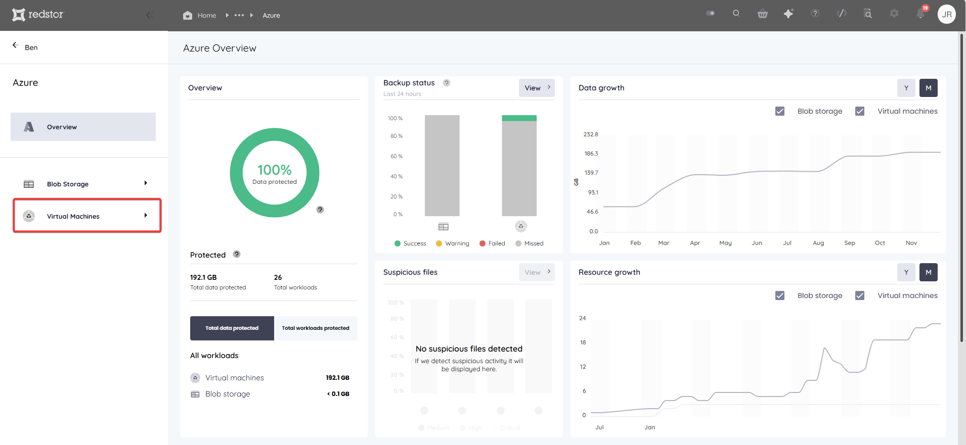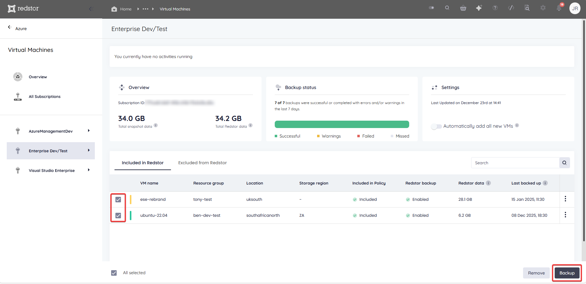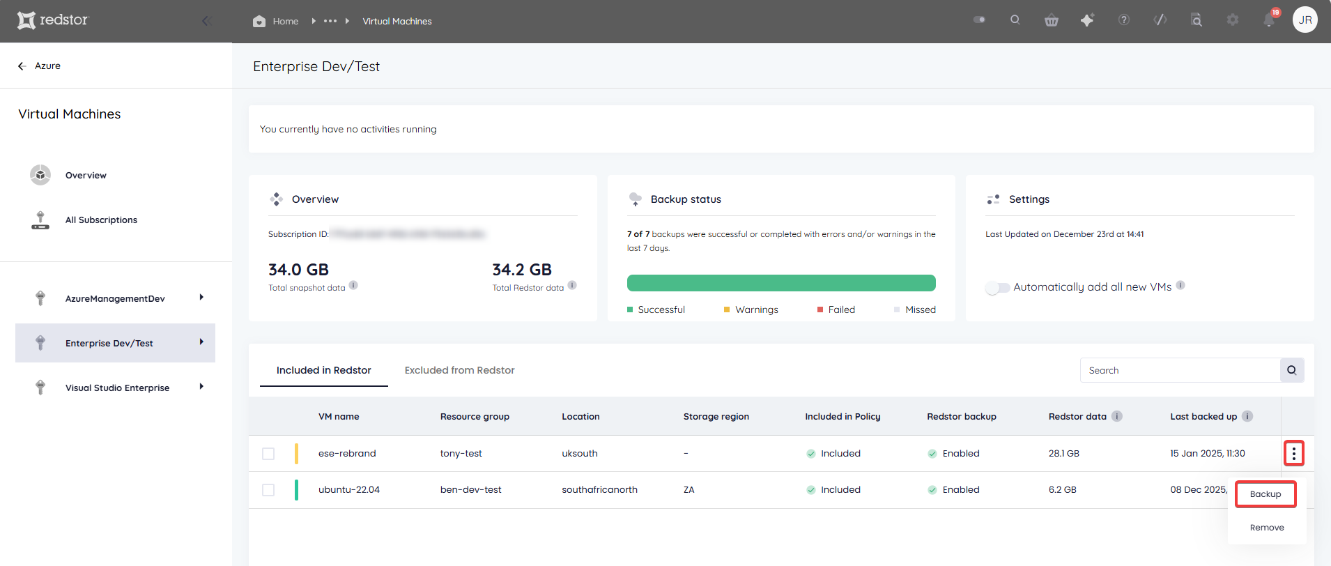 - If you make use of the Storage Platform Console, you will not see any Azure VM backups there unless Redstor Backup (see below) is enabled.