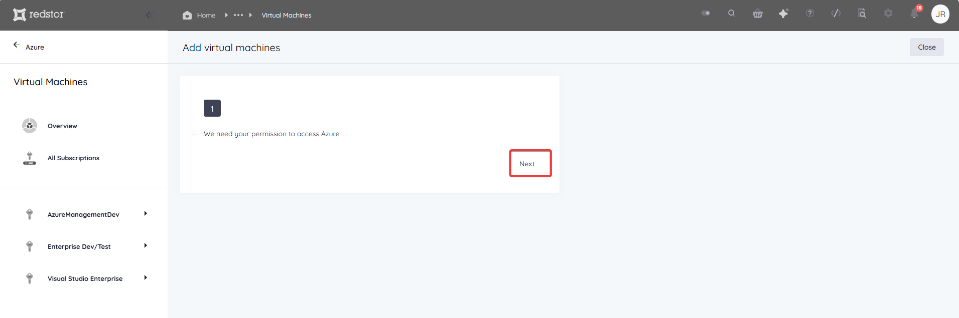 Note: To add VMs for the first time, the user must have an Owner role in Azure. Subsequent VMs can be added by users with the Contributor role in Azure.