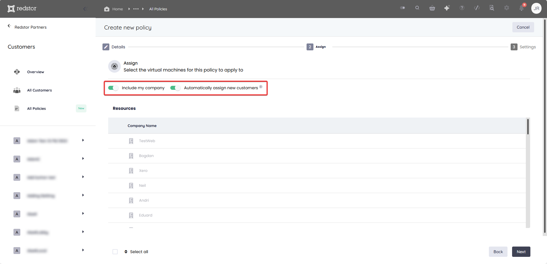 You can also choose to include VMs from your own company and/or auto-include all VMs from new customers.
