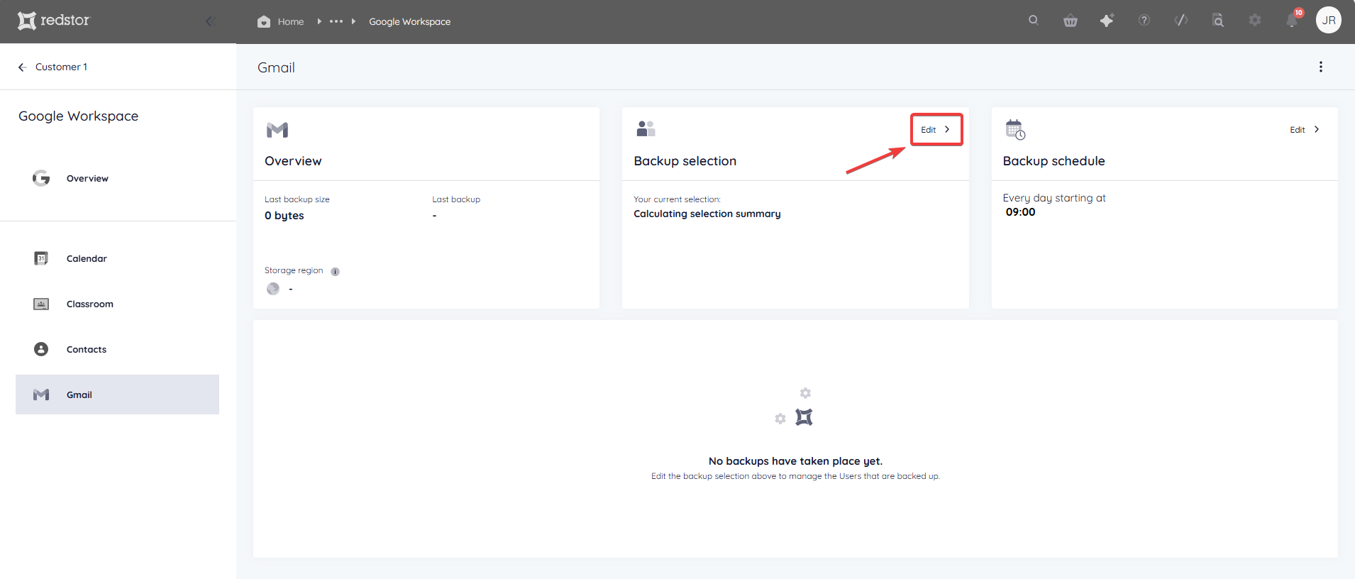 10. Close the Google Marketplace tab in your browser to return to the RedApp. Our system will have picked up that permissions have been allowed, and you will be taken to the home page for your new backup set.