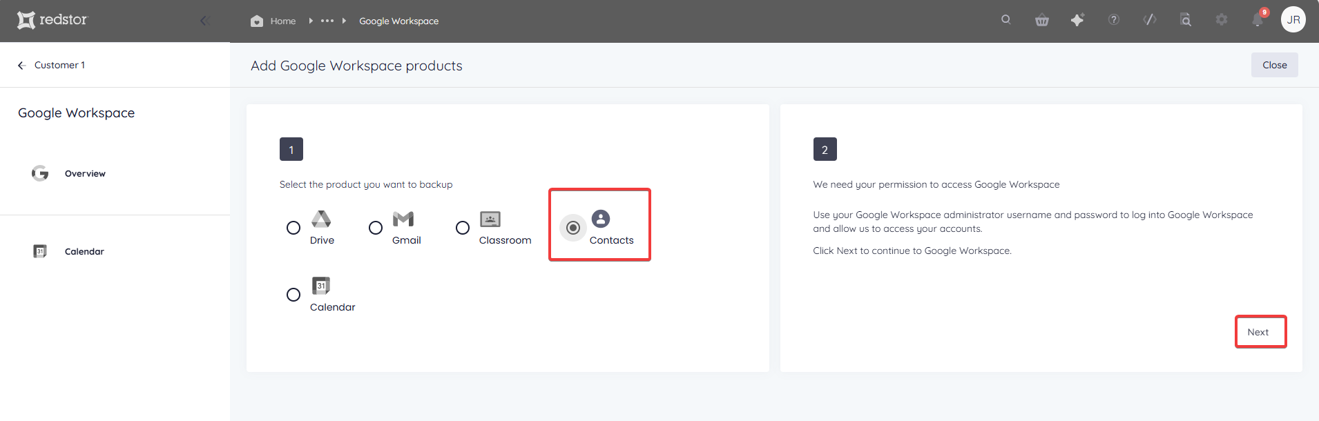 2. To add a new backup set, go to Google Workspace in the sidebar on the left. If you do not see Google Workspace listed, you will need to add it as a product.
