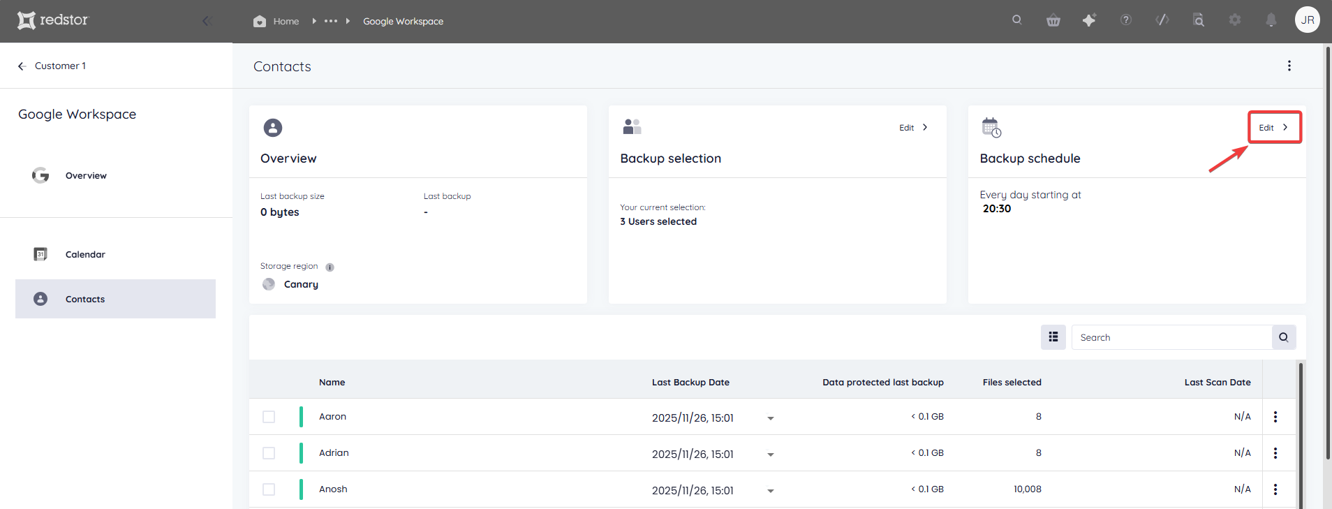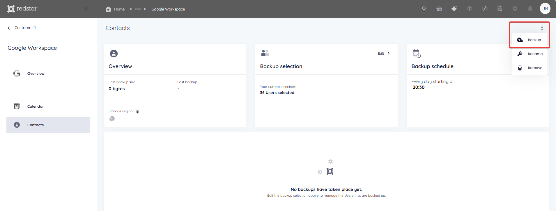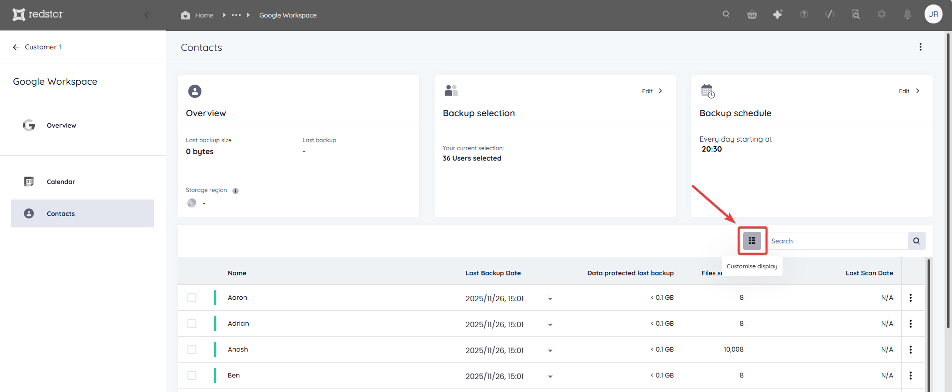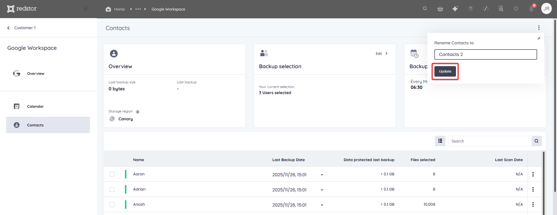 - Important: If a Google Workspace user leaves your organisation, do not delete the user. Redstor has no way of restoring a deleted user's Contacts or Calendar. Gmail can be restored to a different account. If you withdraw the departing user's Google Workspace licence, even if you do not delete the user, Google is under no obligation to retain that user's data. The data may appear to remain present but can be removed by Google at any time as part of cleanup. Consider assigning an archive licence or exporting the data for alternative storage instead.