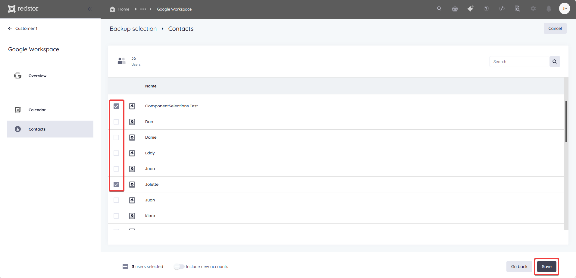 2. Select/deselect the user/s you want to add/remove and click Save to apply your changes. Click Go back or Cancel to keep your existing selection.