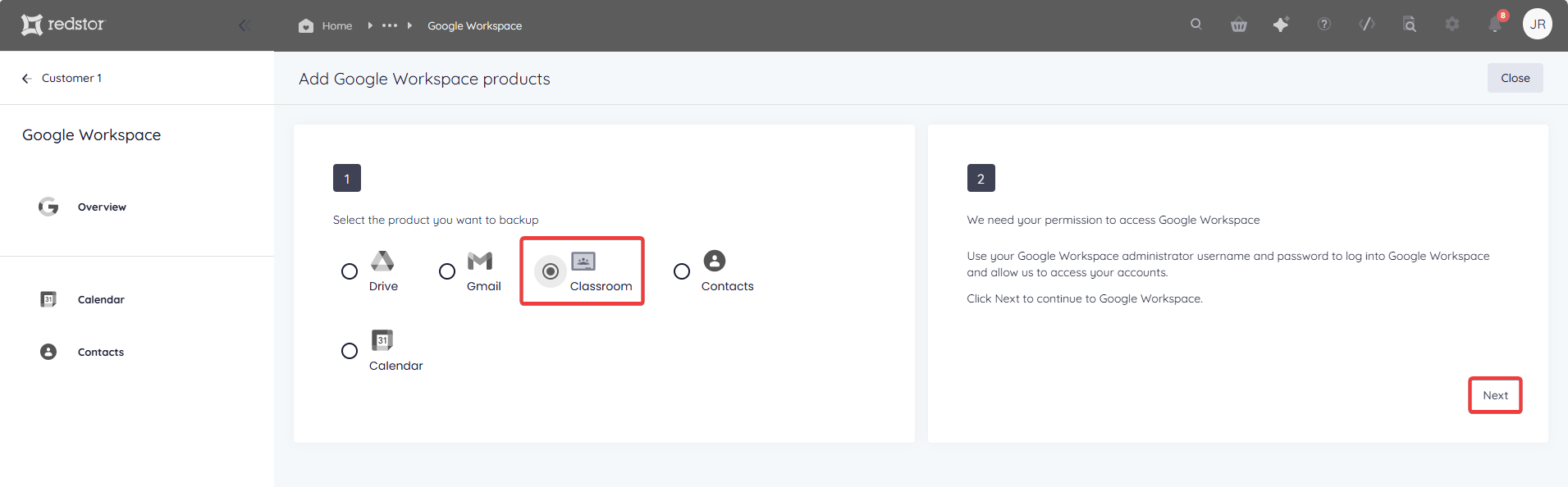 2. To add a new backup set, go to Google Workspace in the sidebar on the left. If you do not see Google Workspace listed, you will need to add it as a product.