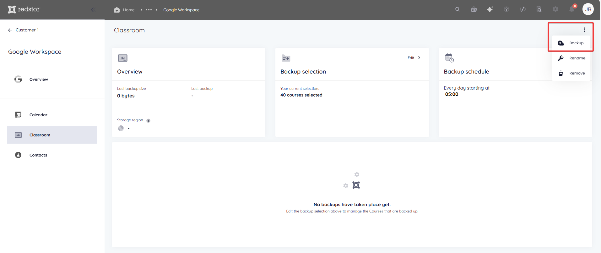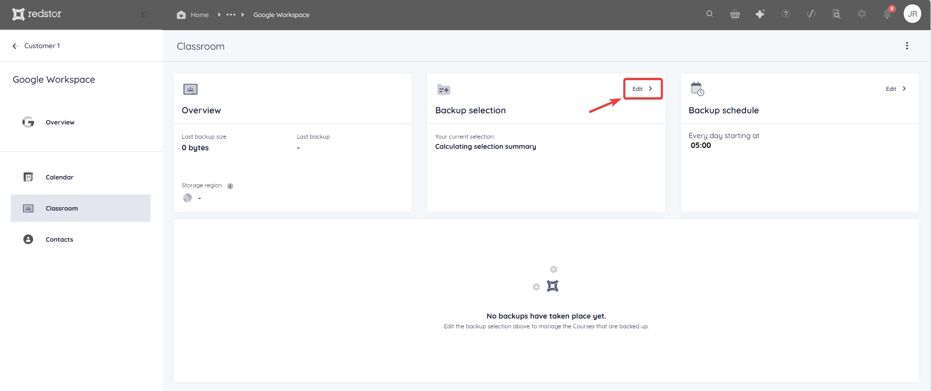 10. Close the Google Marketplace tab in your browser to return to the RedApp. Our system will have picked up that permissions have been allowed, and you will be taken to the home page for your new backup set.