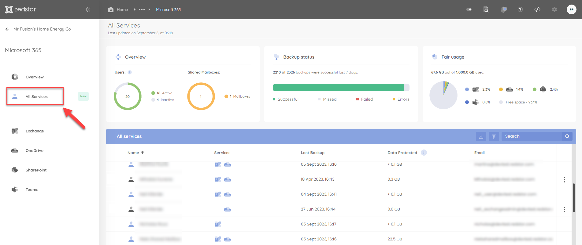 Inactive Microsoft 365 seats can be deleted from the RedApp via the All Services page, which is only available to customers on the new pricing plan.