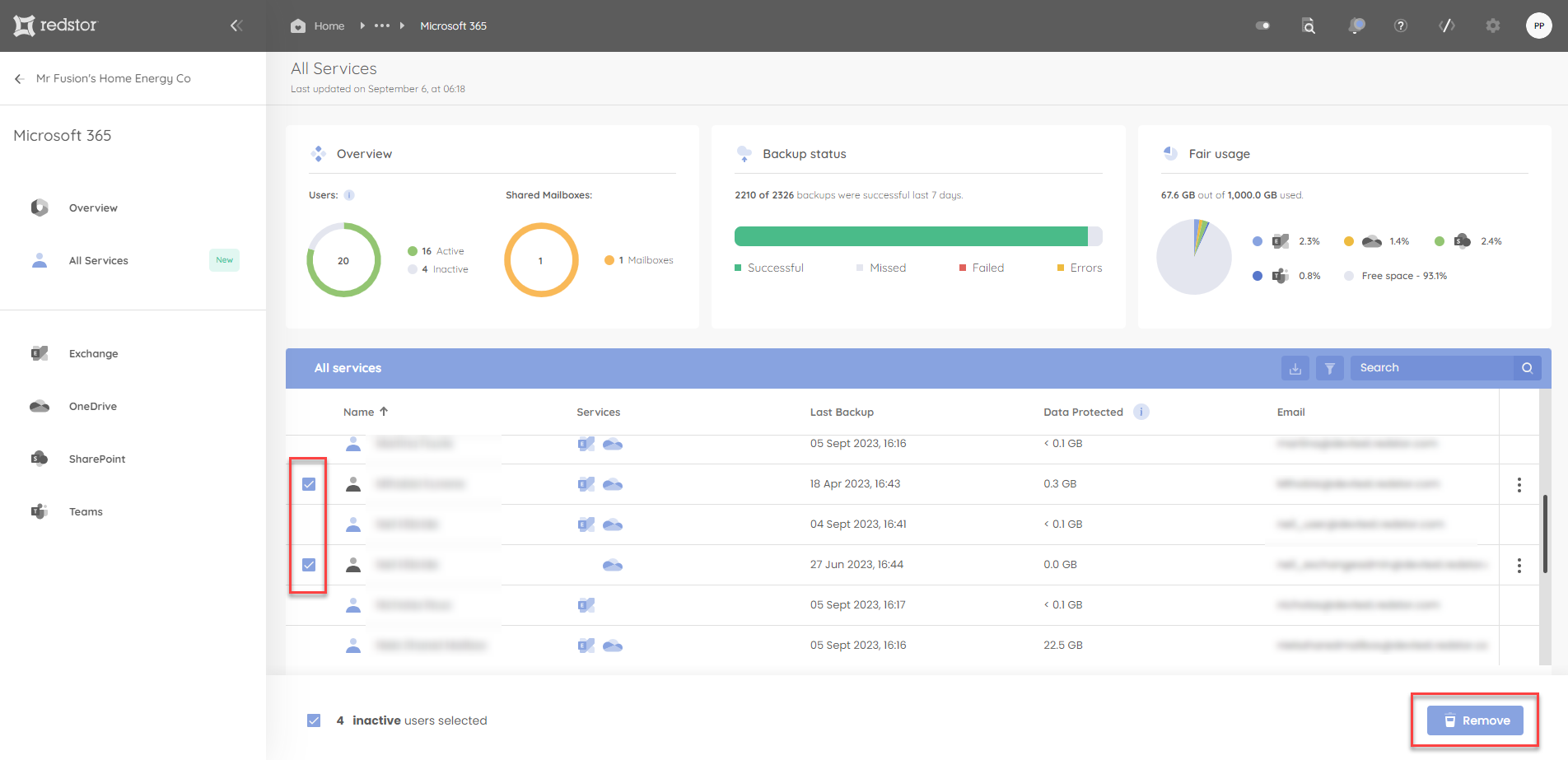 Deleting inactive seats (M365 Exchange and OneDrive only)
