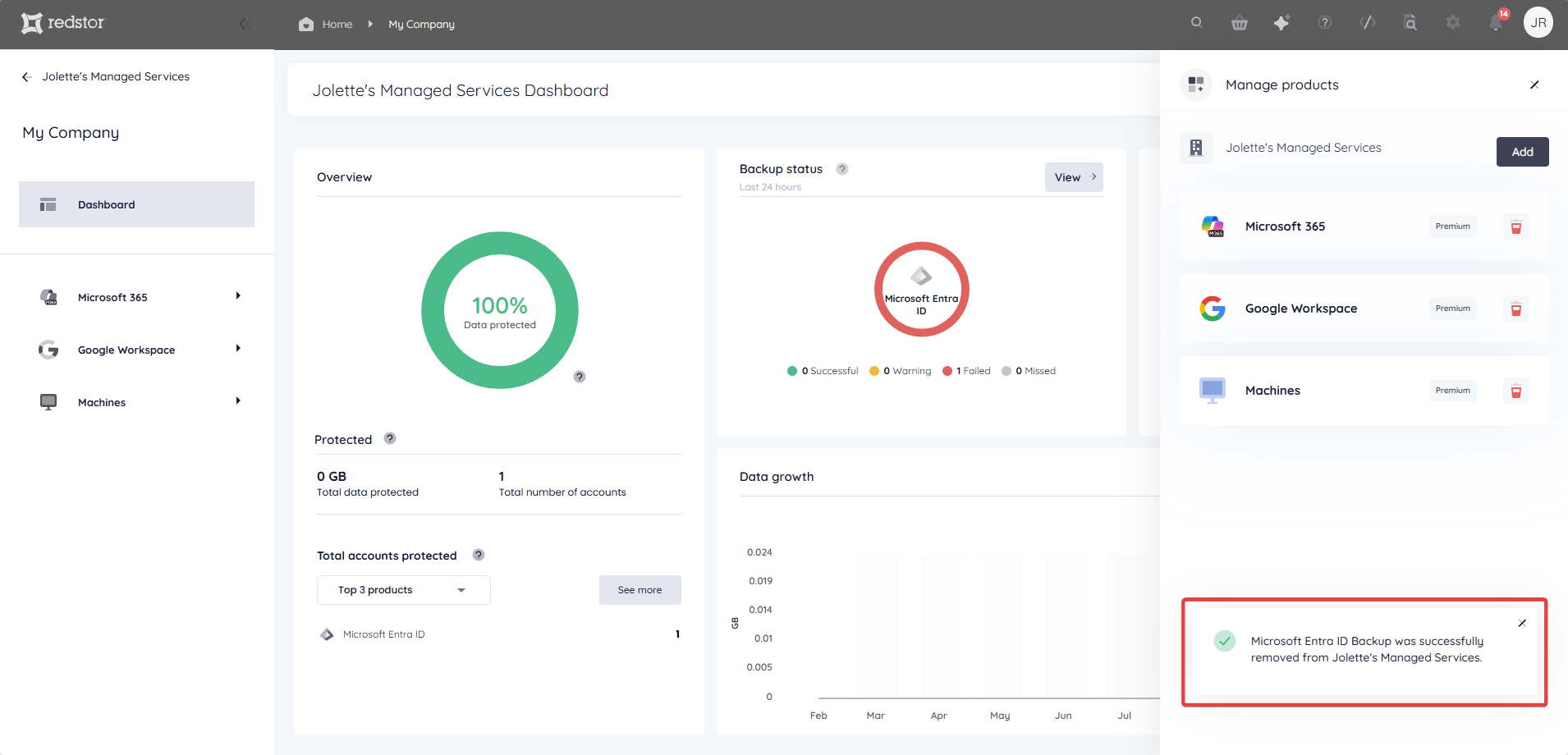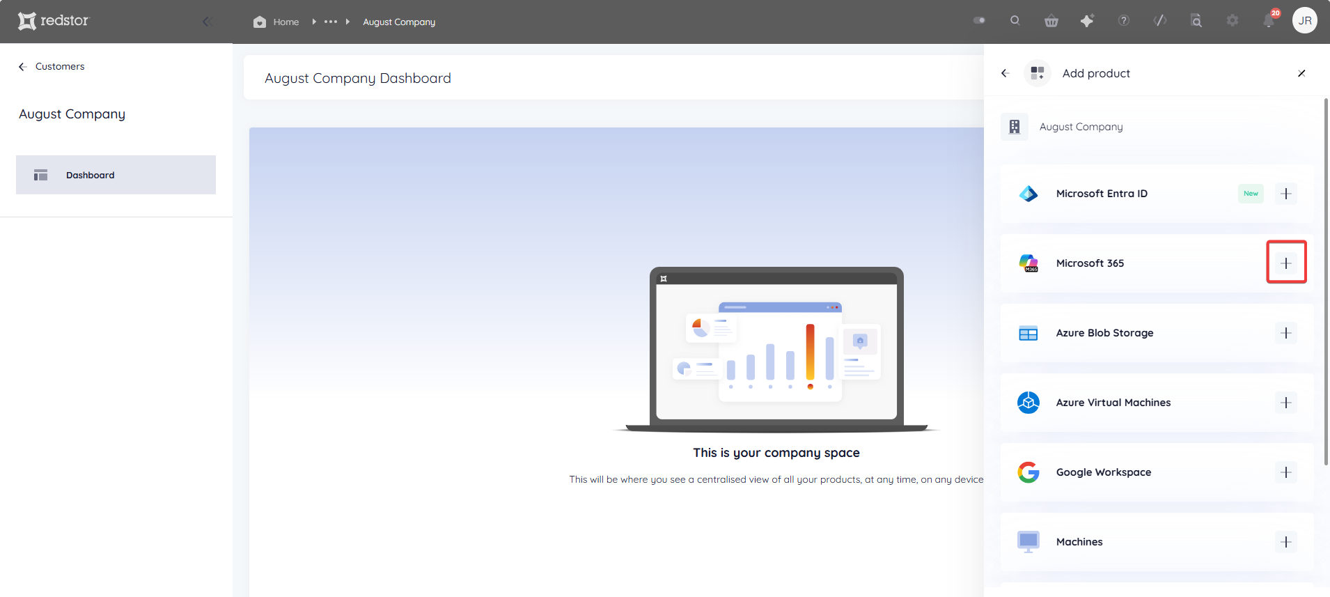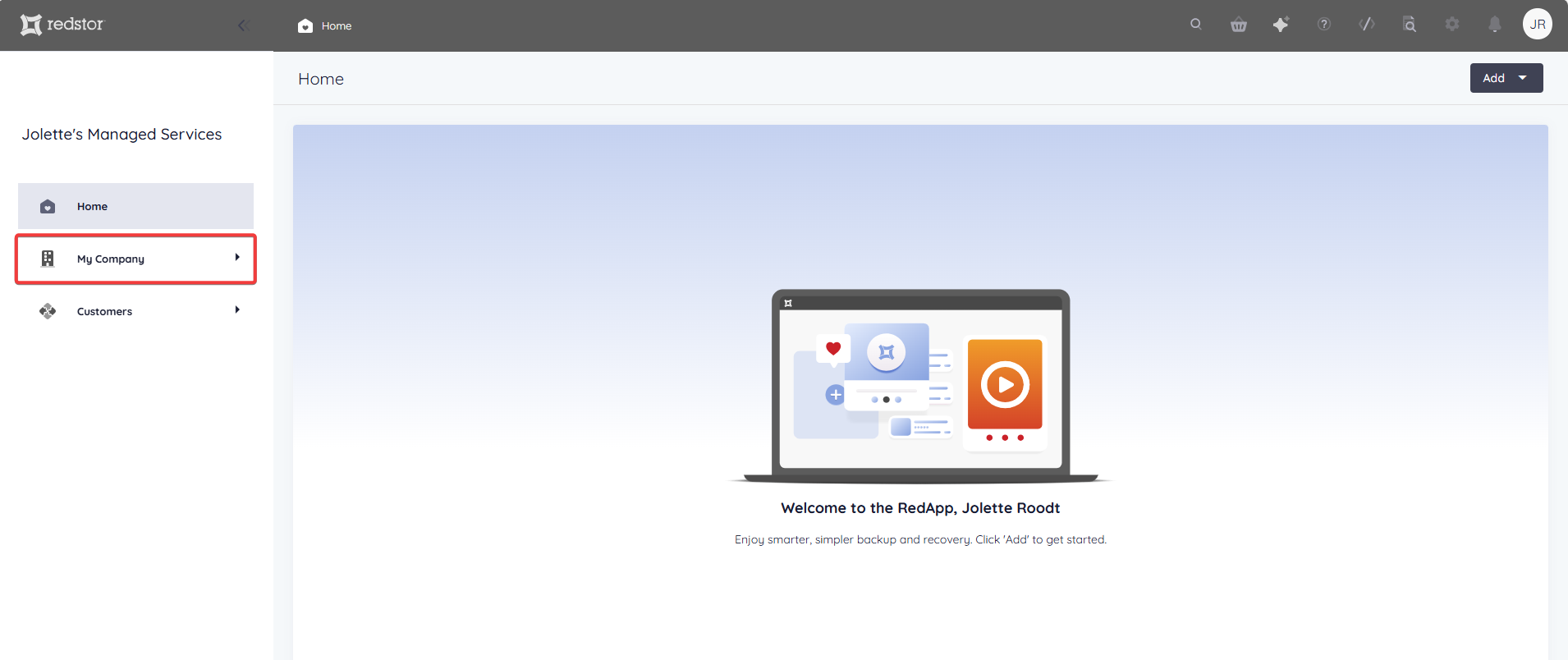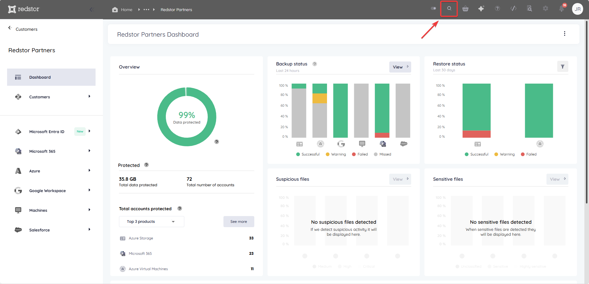 1. In the RedApp, go to the home page for the customer company you want to add backups for. Click on the search icon at the top right to find a specific customer.