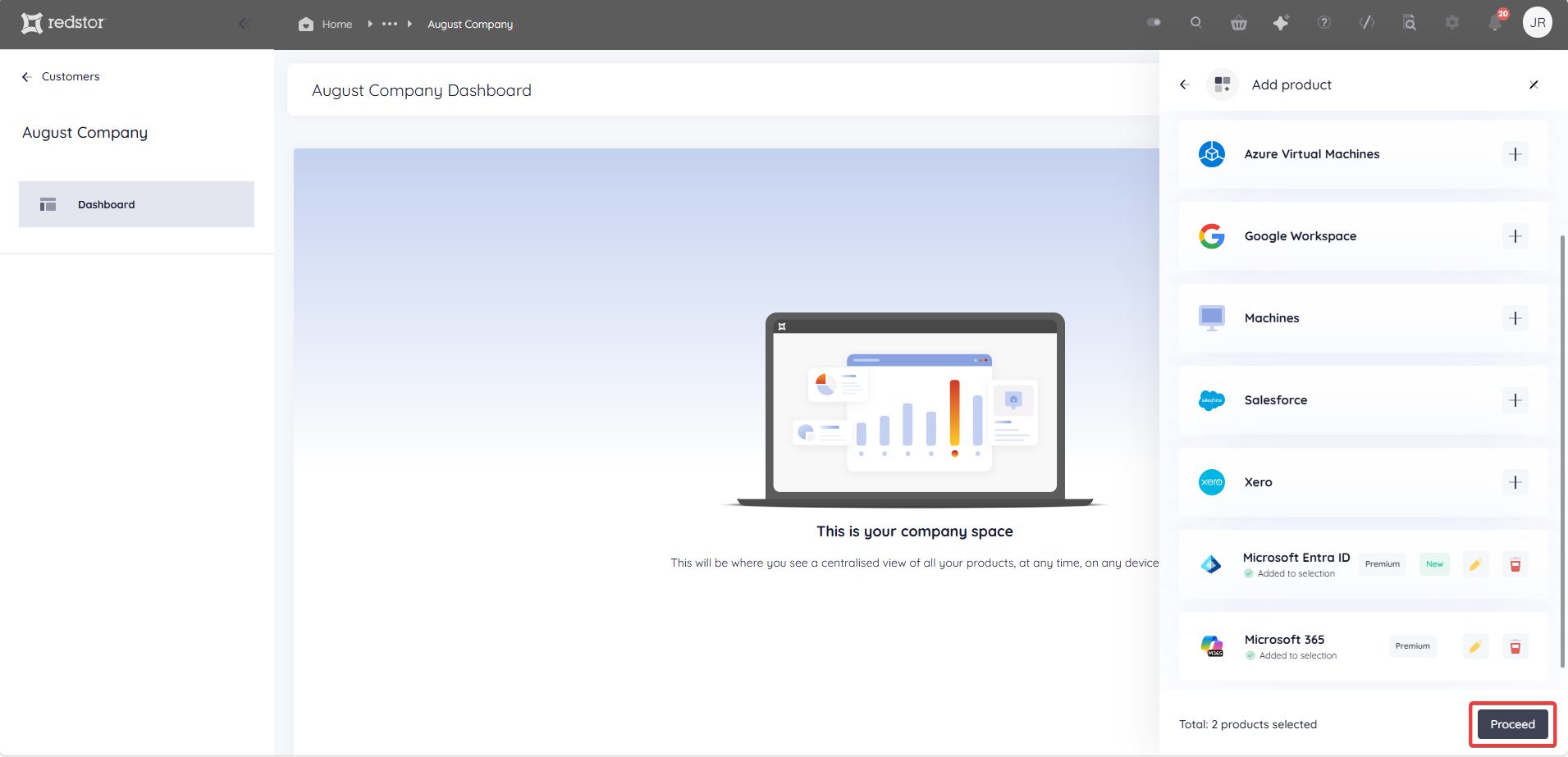5. Once you have added all the products you want, click Proceed at the bottom.