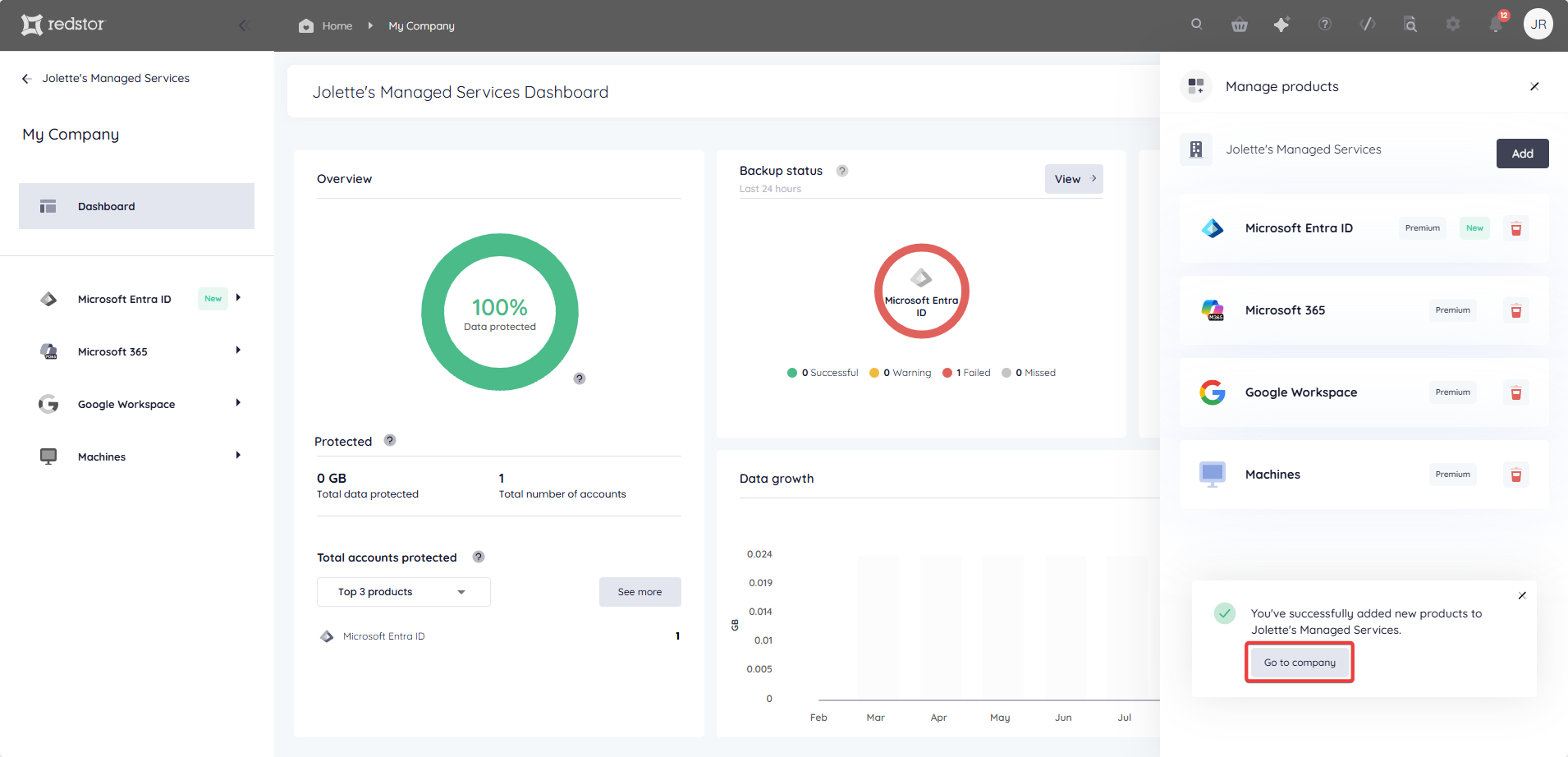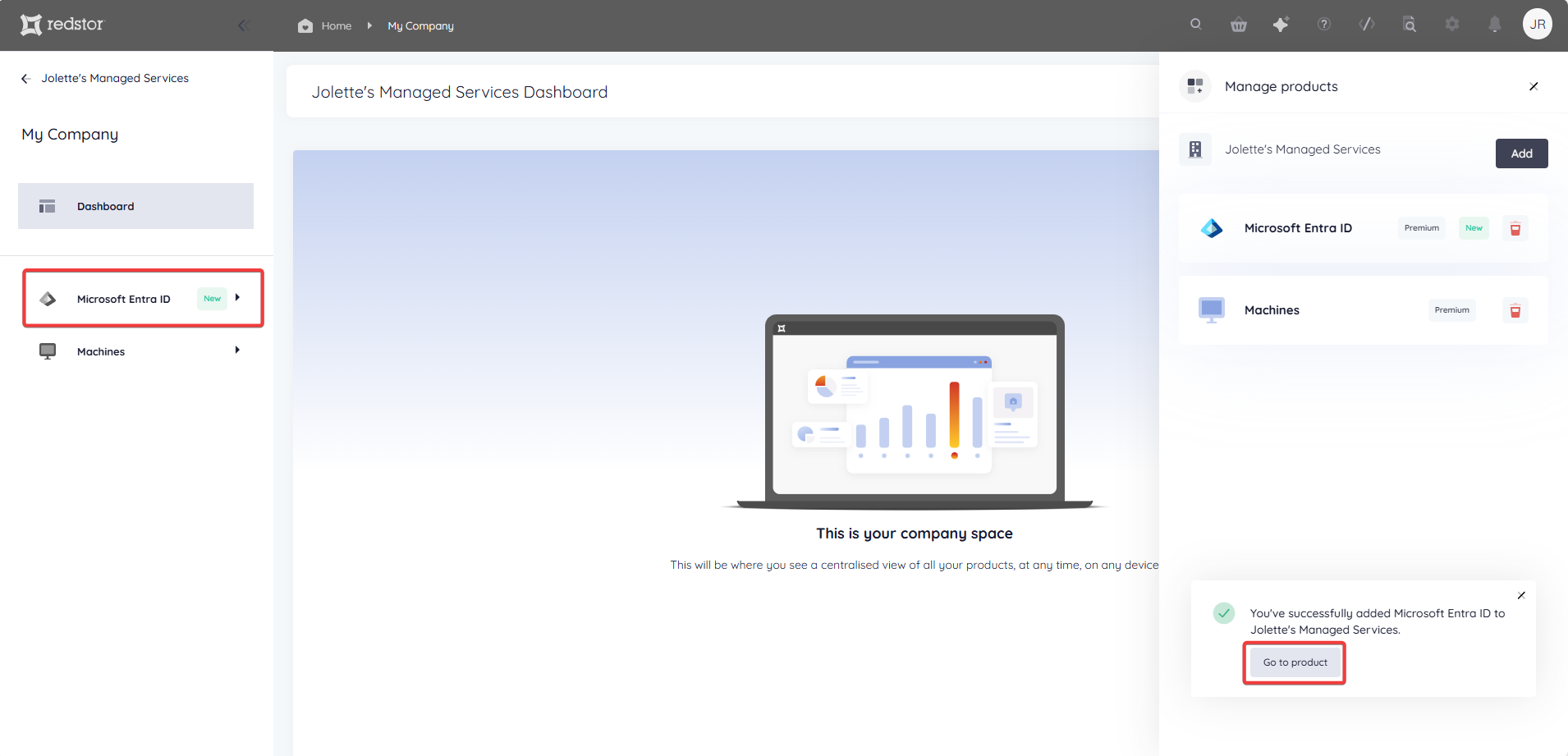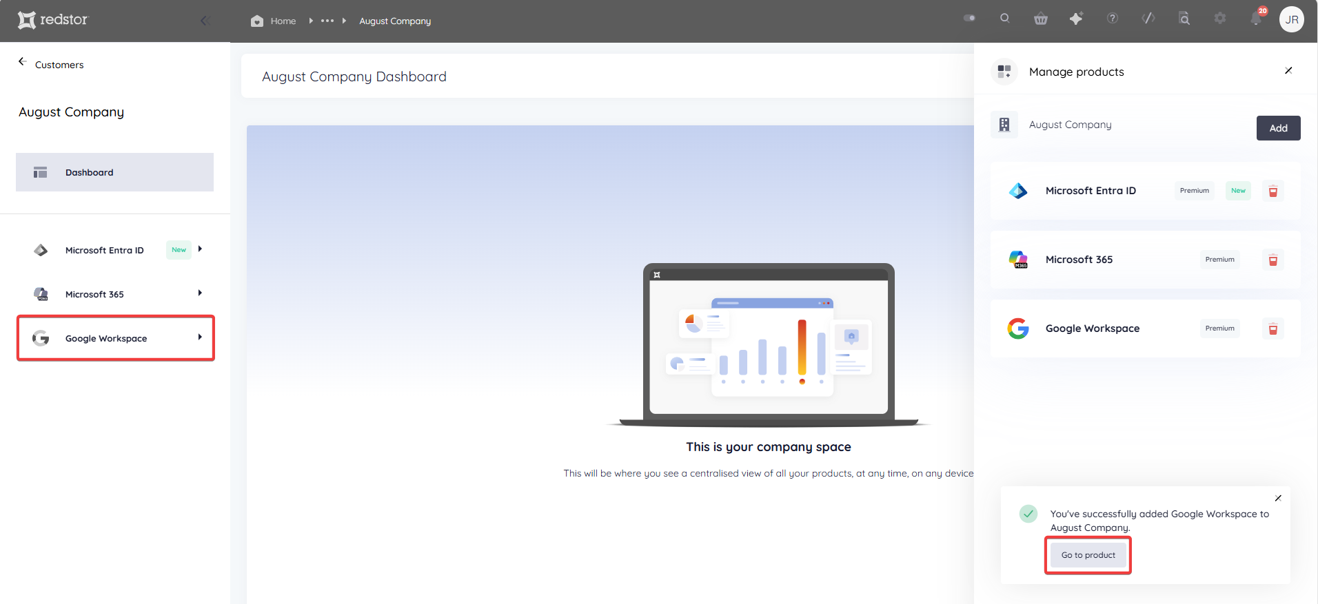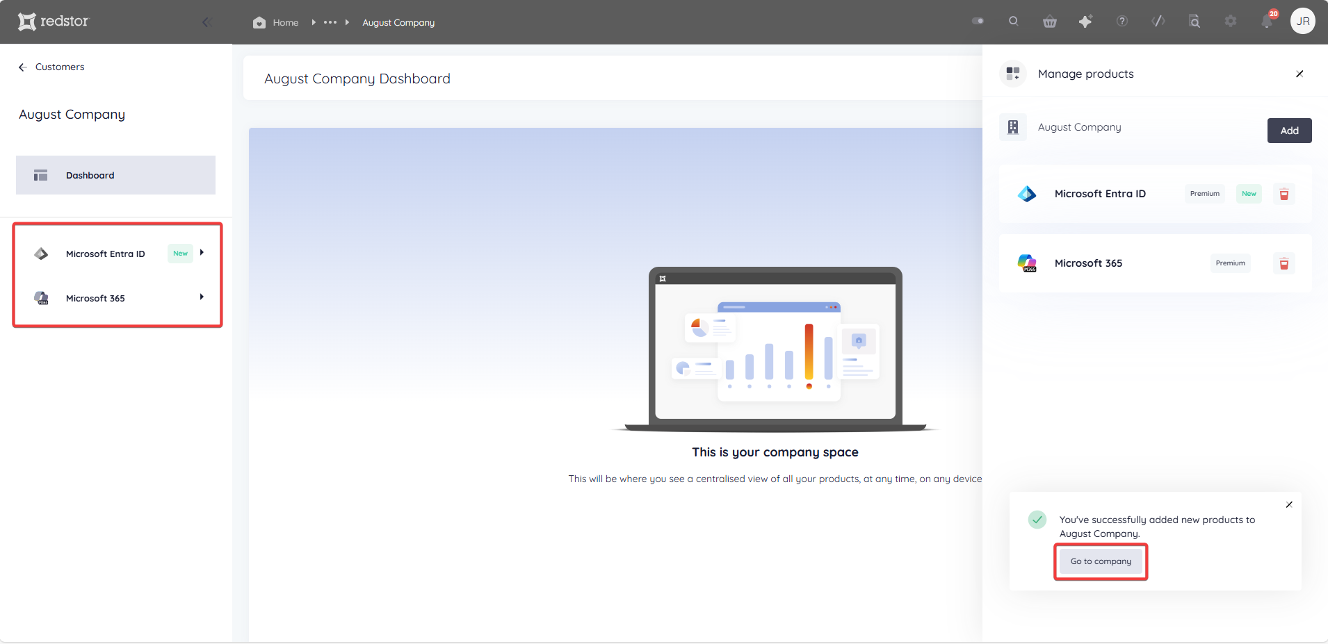 - If you added multiple products, you will see the option Go to company.