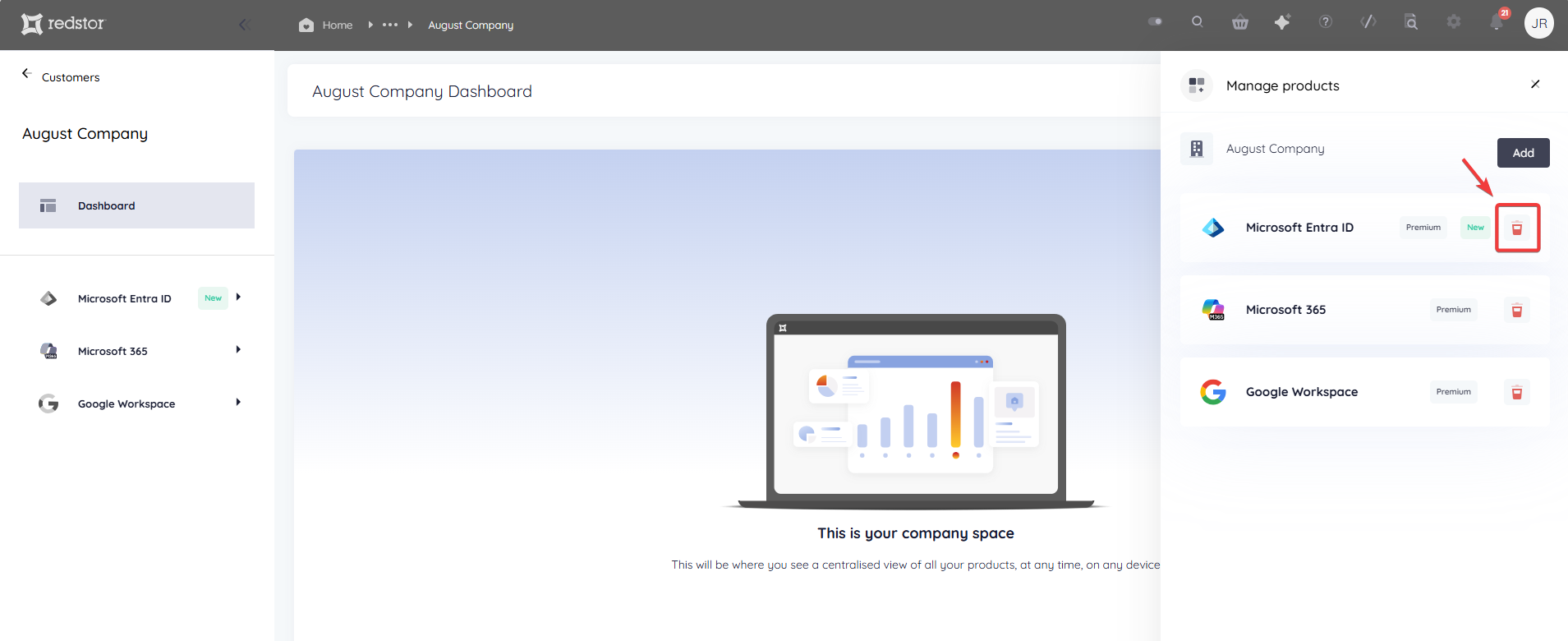 You can use the RedApp to add and remove products for your own organisation as well as for partners/customers.