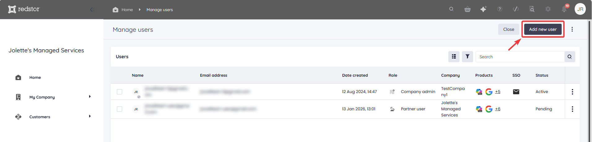 You can use the RedApp to create and manage users for your own organisation and for partner/customer organisations. A user can be assigned customised access (e.g. to a specific product, customer, or group of customers) and customised permissions (e.g. add/edit/delete information, or view only). If a user has been given the required level of permissions, they can also manage other users (e.g. change their permissions or assigned products). Read more about the different types of RedApp user roles in Article 1423 - RedApp user roles.