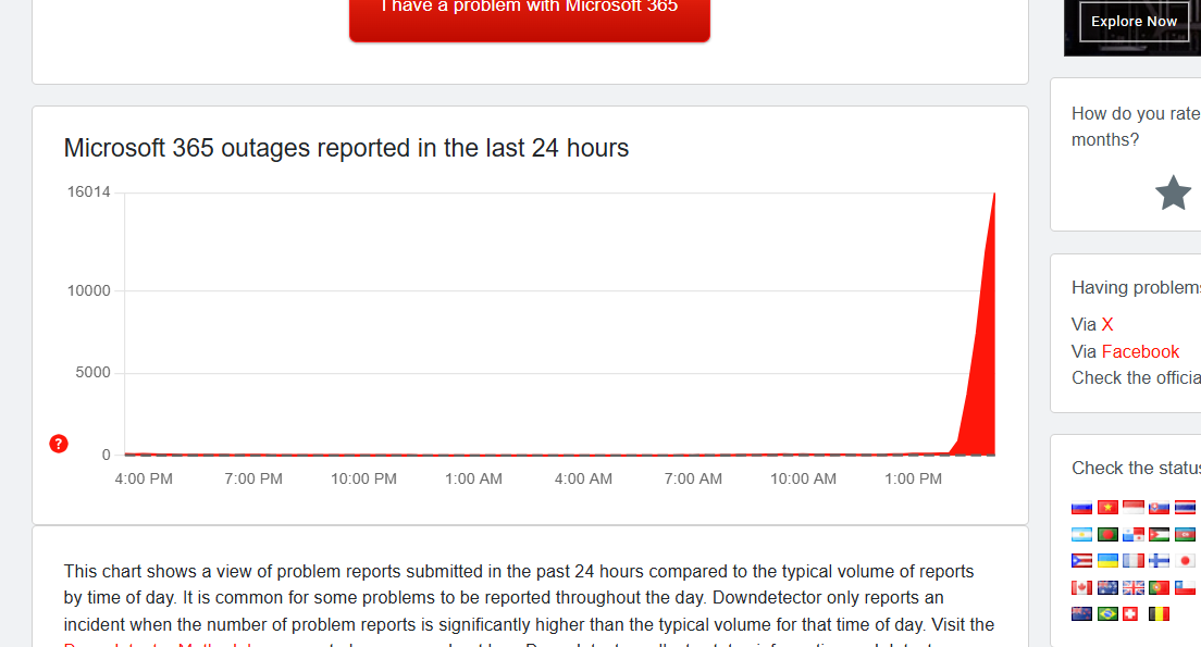 Starting around Jan 22 17:47 GMT (about 2.75 hours ago), Office365 overall started returning the following SMTP response immediately when connecting to it: 451 4.3.2 Temporary server error. Please try again later ATTR2